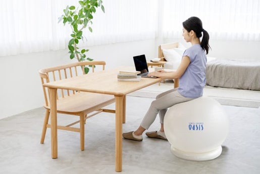 毎日のデスクワークが体幹強化トレーニング時間にバランスボールチェア「MAROOMS(マルームズ)」骨盤を立てる座り方が、より背筋や腹筋への効果を高めます。また転がらないバランスボールは転倒しにくいため安全性が高く、どなたでも安心してご利用いただけます。
